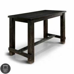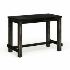 Update your dining are with this black solid wood bar table. This table features an antique black finish and boasts a lovely transitional look. The table has distressed wooden detailing and solid wooden legs. The table features exposed wood grain details for a rustic look. It easily seats four and can accommodate up to six. It conveys a warm, homey appeal that you’ll enjoy
