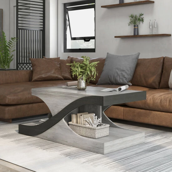 Update the decor in your home with this modern grey 49-inch 2-shelf coffee table. This tablefeatures a flat rectangular tabletop with storage area on the bottom shelves. It’s finished in a lovely vintage grey color that is sure to create a new aesthetic appeal in your living space. It’s an incredible coffee table or accent table that blends beautifully with modern and contemporary decor.