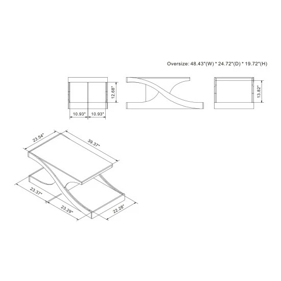 - Overall dimensions: 19.72 inches high x 48.43 inches long x 24.72 inches wide