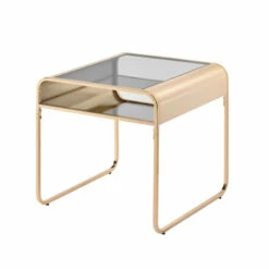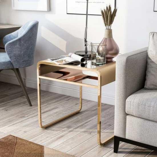 Light and lovely, this contemporary coffee table adds an airy ambiance to your living space. Ideal for the modern minimalist, this table boasts a metallic finish over open sides and graceful curves panels. The tabletop is crafted from clear tempered glass that gives a peek at the mirrored shelf underneath. Add decor on the lower shelf while maintaining plenty of space on the tabletop for snacks or a great book.