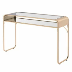 Light and lovely, this contemporary three-piece living room table set adds an airy ambiance to your living space. Ideal for the modern minimalist, this set boasts a warm gold finish over open sides and graceful curves panels. Their tabletops are crafted from clear tempered glass that gives a peek at the mirrored shelf underneath. Add small decor on lower shelf while maintaining plenty of space on the tabletop for larger items like vases and table lamps.