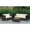 The Furniture of America Wiba All Weather Wicker Patio Set is designed to give you endless customization. These modular patio chair pieces have dense cushioning wrapped in durable polyester canvas. These modular outdoor seating pieces are UV and water resistant with their faux wicker rattan exterior and aluminum frame. Take advantage of your outdoor space and up the coziness factor with this coffee table too.