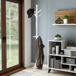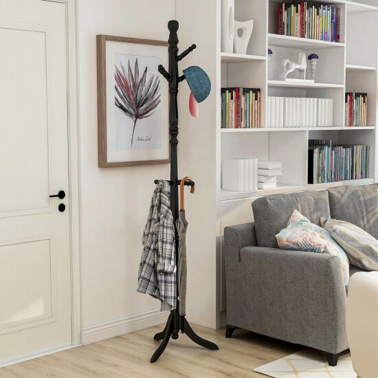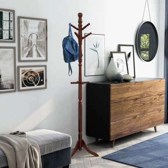 Keep your coats, hats, bags, umbrellas, and scarves neat with This Furniture of America Wild traditional-style coat rack. This coat rack includes six long hooks at the top for longer items and four middle hooks for easy hanging and access of smaller items. The wooden construction and three-legged base provides for strength and stability.