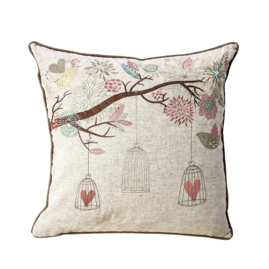 - Birdcages, hearts and flowers convey whimsy and cheer on this adorable accent throw pillow