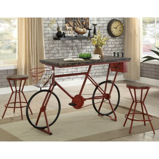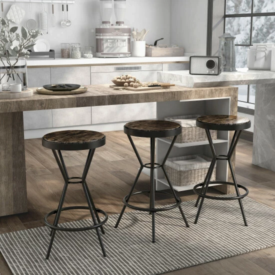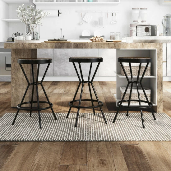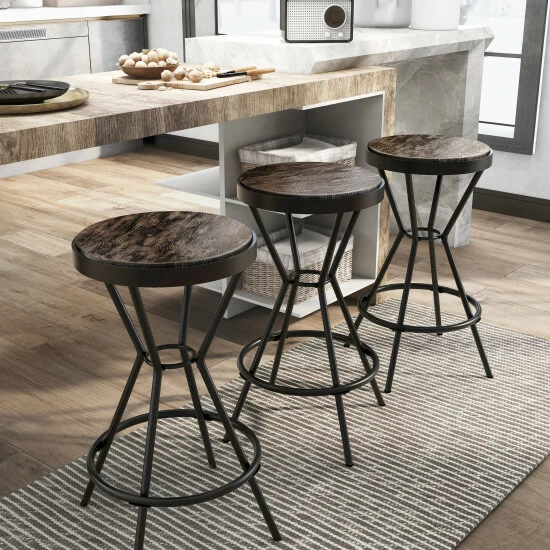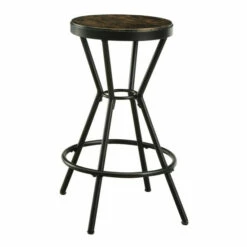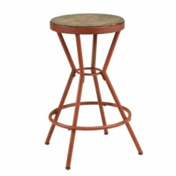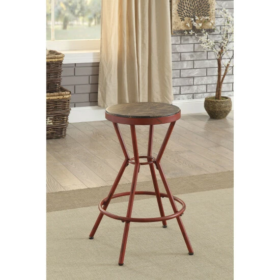 Bring a storied artisan aesthetic to a casual space with the Wixi metal round bar stool. An industrial motif with studio inspiration tones down the overall look of this tasteful stool, making it a perfect fit in a variety of settings. Playing on soothing color, its angled open base is crafted of metal with an understated red finish and comfy ring footrest. Sit in comfort on a round wood-look MDF seat with a weathered finish. Armless and backless, this vintage-style bar stool reflects a simple retro vibe that moves from room to room to accessorize and provide convenient seating. Take advantage of its tasteful color palette to build an artistic ensemble of casual furnishings.