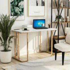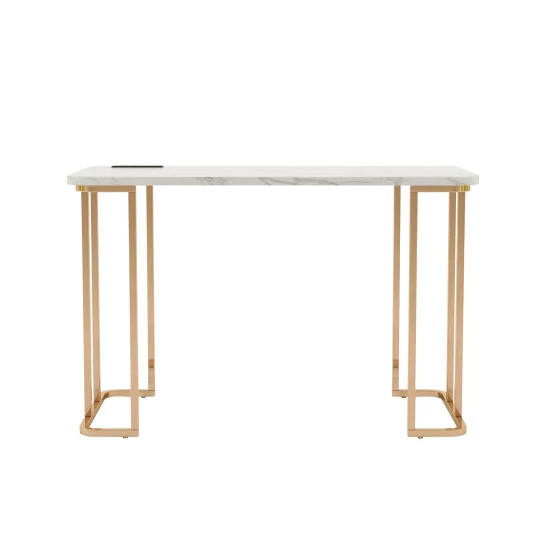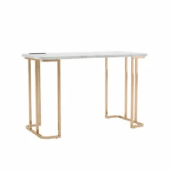 Modernize your home work station with the Woren desk. This contemporary writing desk brings on the glam with its sleek metal frame and faux marble top. A built-in power outlet allows this elegant desk to be placed anywhere in the room. Rounded edges and gentle curves create a smooth silhouette that instantly elevates decor.