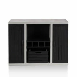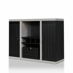 Ensure that your dining accouterments are close at hand, with this industrial, 47-inch buffet sideboard. Its bold, boxy silhouette flaunts a striking, cement-like frame and a classic plank design for the perfect blend of rustic and industrial allure.