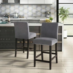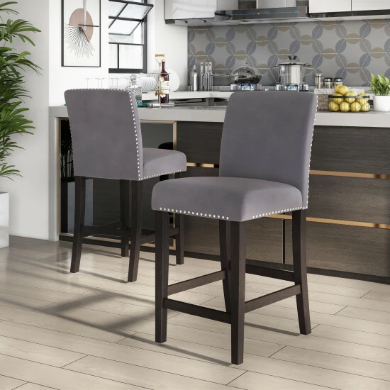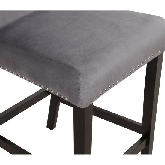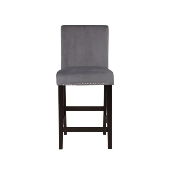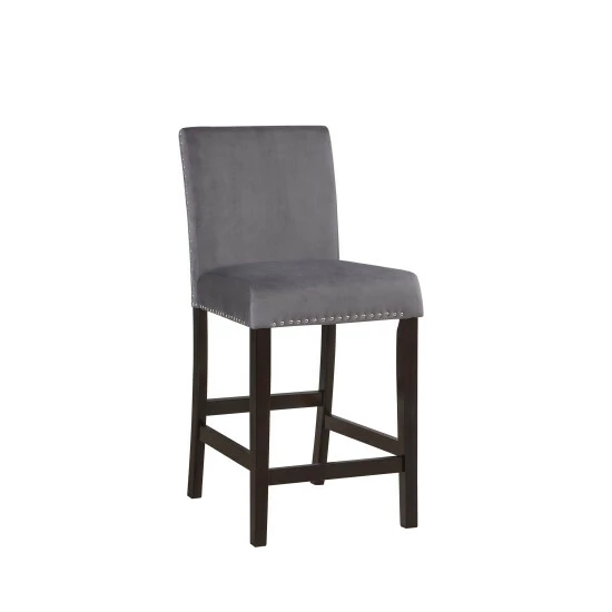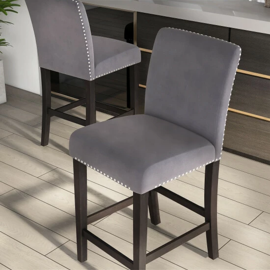 Update your kitchen counter with this set of grey velvet upholstered counter height chairs. The parson-style design is accentuated with nailhead trim for a glam look. These 100% foam fill seats are medium firmness.
