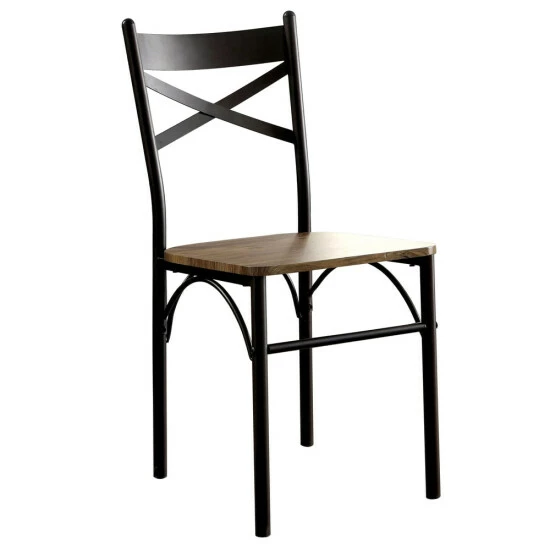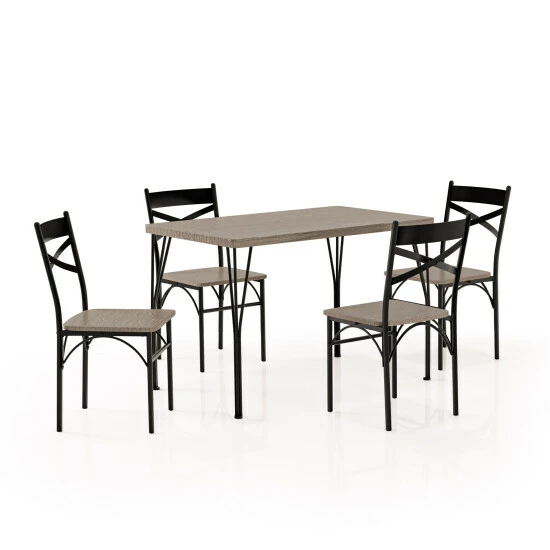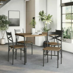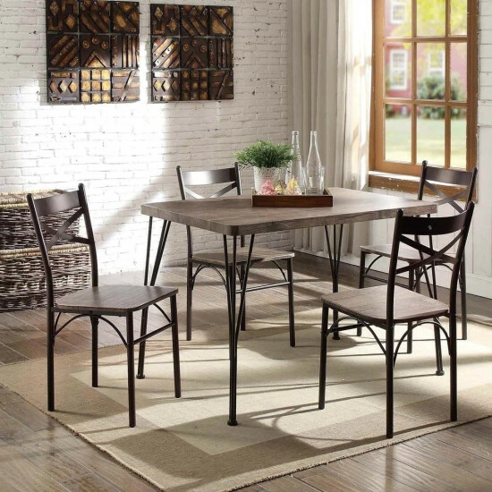 Savor the style and convenience of this compact five-piece dining set, in the rustic appearance that you love. This table-and-chair set complements other urban pieces for easy placement in studios or a corner of your living room. The four matching chairs boast a modern crisscross back, while straight legs with slightly curved details.
