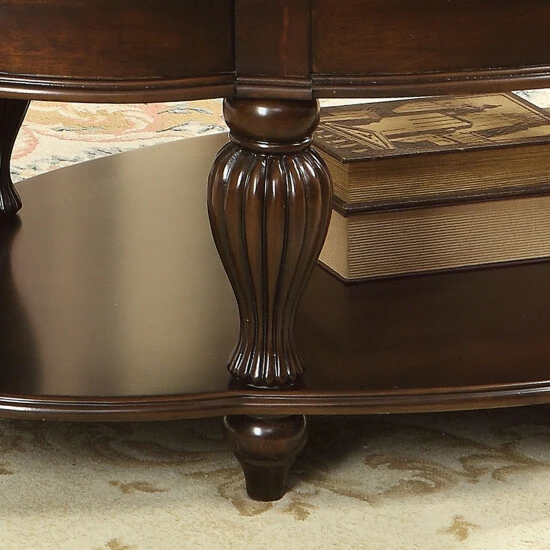 Traditional elegance transforms the vibe of a semi-formal or formal living space, creating a perfect venue for the Zerathe two-piece wood accent table set. This set from Furniture of America highlights a careful approach to artisan design, paying attention to small details. Each tabletop is shaped into a quasi-quatrefoil silhouette with decadent wood curved strips and ornate wood scrollwork under clear tempered glass. Thick aprons offer linear accenting, as the luscious frame design showcases reeded, curved legs. Dual surfaces include a spacious tabletop and lower shelf, each making space for storage and display.