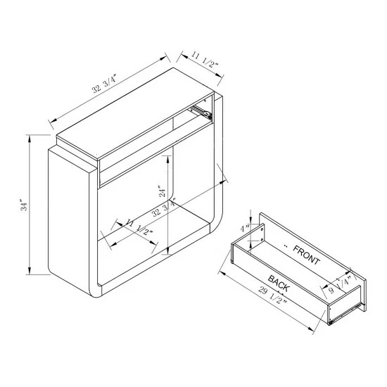 - Shelf dimensions: 24 inches high x 32.75 inches long x 11.5 inches wide