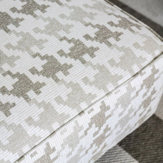 - Transitional style ottoman with grey houndstooth patterned upholstery