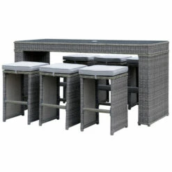 Enjoy the serenity of the outdoors at this chic contemporary barstool set from Furniture of America and the Zons contemporary outdoor collection. The set of six backless barstools are perfect for a patio bar table and they feature a sturdy aluminum wicker frame and plush fabric seat cushions. Cushions attached to the tops of the stools to ensure they stay in place while you’re seated or when the wind kicks up in the afternoon. The grey hues of this set and collection are a stylish touch that update and modernize any backyard. You’ll enjoy kicking back with friends and family while you enjoy a cocktail or frosty lemonade in the summer sun.