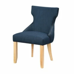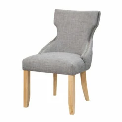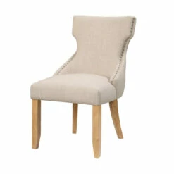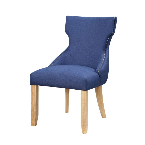 Introduce a playful, modern energy to your dining table with this set of two linen side chairs. With inspirations taken from a classic wingback, the chairs are an elegant choice, complete with gentle curves and nailhead trim that adds pop. Natural wood legs complete the look.