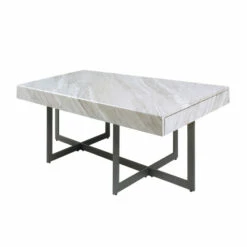 Clean, sleek style meets modern luxury in this contemporary three-piece faux marble coffee table set. Perfect for an inviting great room, it delivers storage in hidden drawers and offers a cool, sculpted design that brings an artistic sensibility to any space.