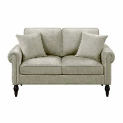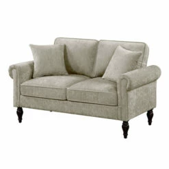 Accentuate your welcoming family space with the familiar warmth of this traditional fabric loveseat. Soft chenille upholstery pairs with plush cushions and pillows while rolled arms and turned legs boost the classic ambiance of this inviting loveseat.