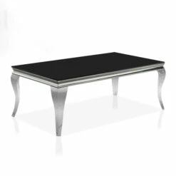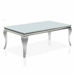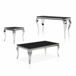 Embrace timeless curves blended with ultra-modern style in this contemporary three-piece coffee table set. Cabriole legs add a hint of drama to tempered glass tops and a gleaming silver finish that adds reflectivity and sophistication in any sitting area.