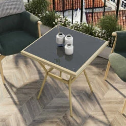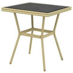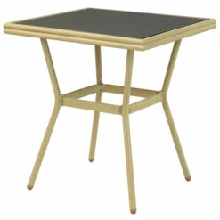Create the perfect spot for lunch or dinner with this charming transitional outdoor dining table. Lightweight but stylish, the table features a natural finish base with a clear glass tabletop.